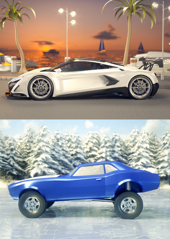 На 13 разворотах можно создать эксклюзивные автомобили - внедорожники, спортивные автомобили и другие модели, дополнив их различными деталями: дисками, выхлопными трубами, логотипами и т.д.