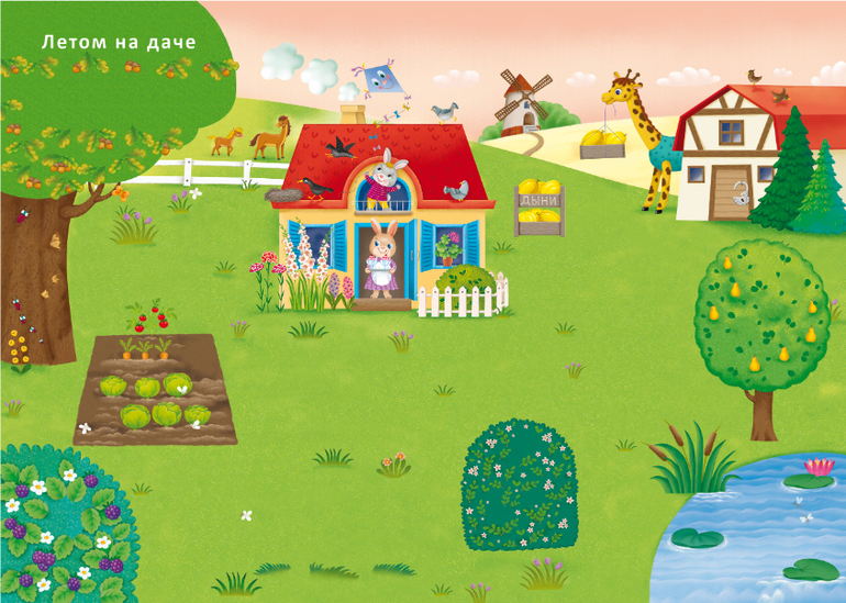 На 13 разворотах можно рассмотреть различных животных и узнать о том, как и где они живут, а также побывать в саванне, погостить на ферме, оказаться среди коралловых рифов и пр.