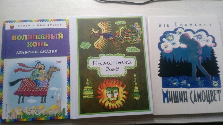 Каменный лев (тибетские сказки) - раньше я с этими сказками была не знакома. Мне показалось, что они очень отличаются от прочитанных нами недавно венгерских и арабских сказок по стилю изложения. Венгерские - веселые, легкие, кажется, что их рассказывает молодой веселый парень-лихач. Арабские - завораживающие, страшные. Их рассказывает старец в чалме, с белой бородой, спокойный и невозмутимый. А вот тибетские... они такие серьезные. Их рассказывает взрослый строгий степенный мужчина, глава рода, который несет за все ответственность. Слог больше похож не на сказку, а на обычную повесть. Сюжеты разные, есть отдаленно похожие на широко известные. Кстати одна сказка очень похожа на Две жизни султана Махмуда из предыдущей книги. В конец книги несколько коротеньких сказок о животных. Читали мы эту книгу очень долго. Я даже боялась, что Лида откажется их слушать, но она слушала хорошо. Правда, когда разбирали очередной заказ из Лаба и там была очередная книга со сказками, Лида честно сказала, что сказки ее уже достали) Но забегая вперед скажу, что когда мы стали выбирать следующую книгу, Лида попросила почитать сказки... Видимо, втянулась!