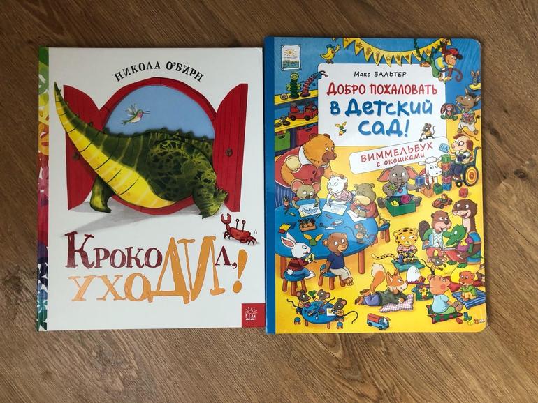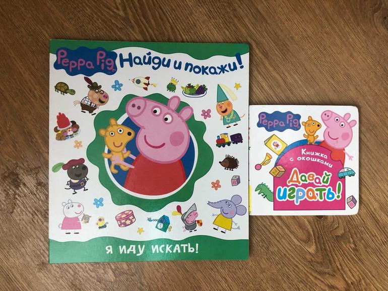 3. Без Пеппы не обошлось) Первая книжка - по типу виммельбуха, простенькие вещи искать на страницах. Вторая - с окошками, уже перерос, но любит.