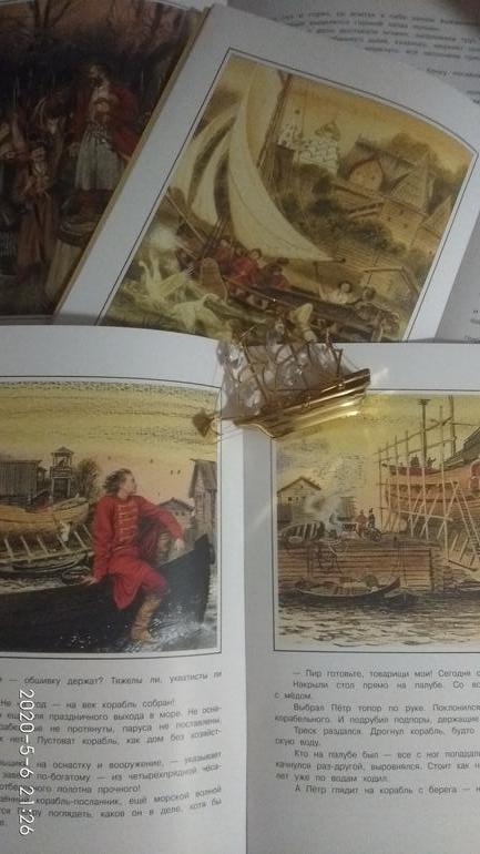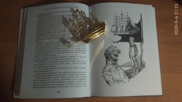 Владику книга понравилась и, учитывая все предыдущее чтение про морские сражения и плавания, стал просить у меня энциклопедию про парусники. (Благодаря Марине и скидок в Лабиринте заказала Фрегат Звенящий, ждем). Крапивин писатель для мальчишек о мальчишках, и его я купила достаточно много (по меркам нашей маленькой библиотеке) для Владика. Какие-то книги я тоже читала и мне он нравится. Но вот эту нет. Несколько раз начинала, и мне было очень скучно читать, как мальчики пошли стрелять из настоящего пистолета по бутылке. Сыну же наоборот, это было интересно, и он мне потом рассказывал, кто куда попал))). Так вот, я себя решила не заставлять читать дальше, хотя скорее всего все самое интересное было потом. Книга серийная, качество хорошее, белые страницы, редкие рисунки.