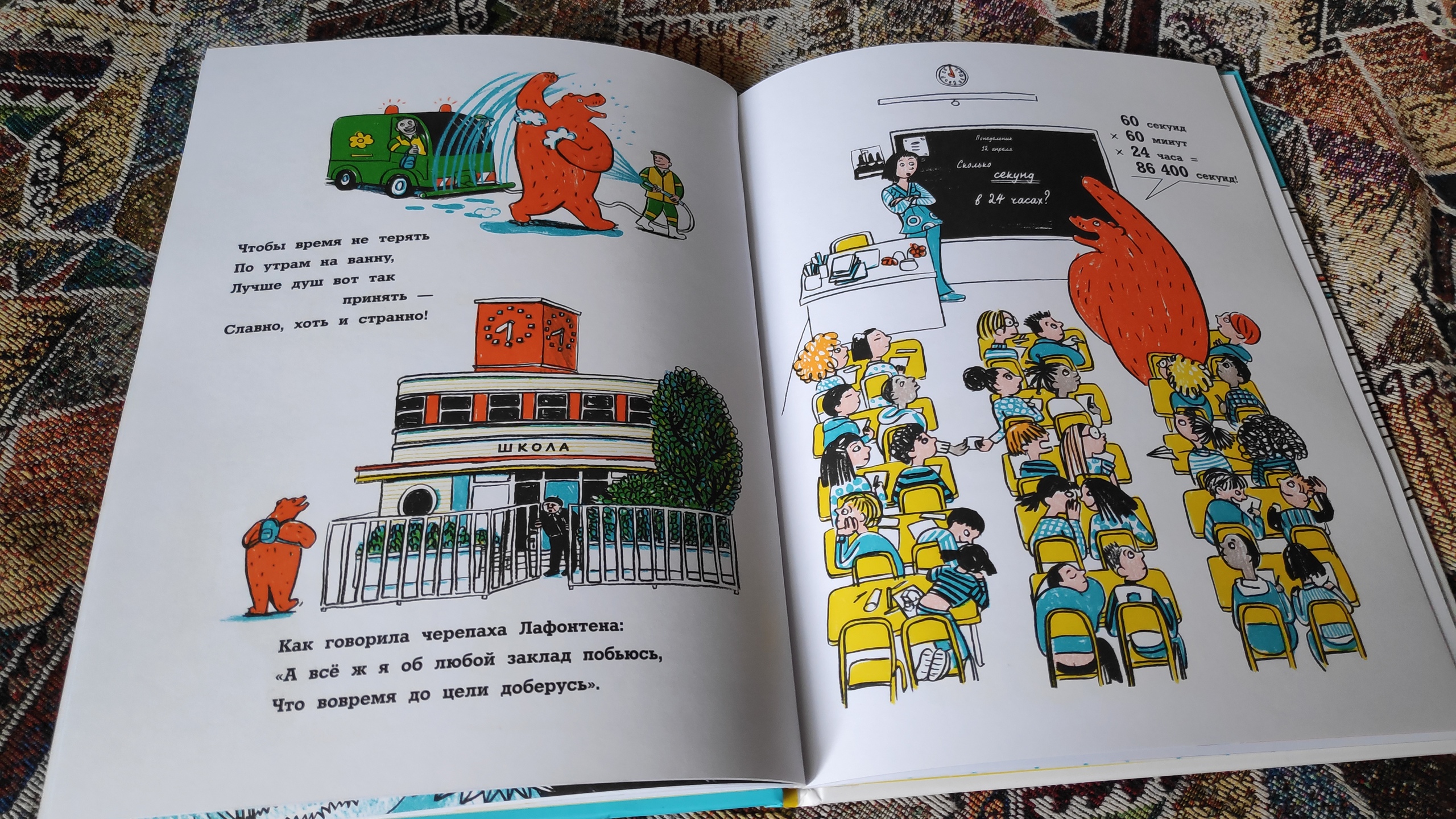 Этот куплет словно специально написан для музыкального сопровождения к новой книжке с циферблатом на обложке Не опаздывай, Медведь!