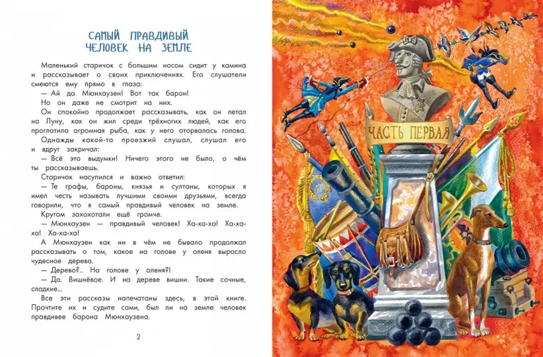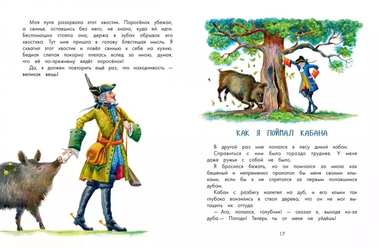На первой же странице книги барон Мюнхаузен сообщает, что он самый правдивый человек на земле. Судите сами: он жил среди трёхногих людей, летал на Луну, сражался с бешеной шубой, даже однажды вывернул волка наизнанку! Как-то раз Мюнхаузена проглотила огромная рыба, в брюхе которой ему довелось встретиться с моряками из разных стран. Они так и остались бы заложниками морского чудовища, если бы не смекалка и храбрость барона. В общем, из всех испытаний храбрый Мюнхаузен выходил победителем. Не верите? Открывайте книгу и убедитесь сами!