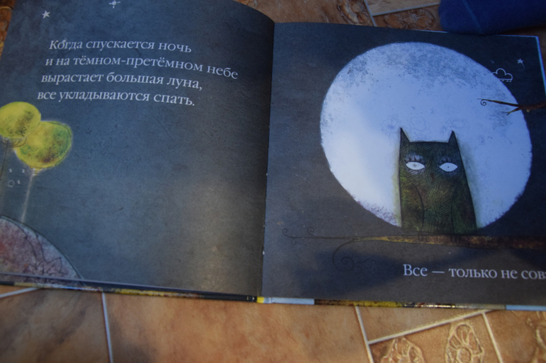 «Тс-тс-тс…Сонная книжка» Иль Сунг На. Книга молодого корейского художника. Про то, как кто спит, а наша героиня сова за всеми наблюдает ночью, а когда рассветает, все просыпаются. Все, кроме совы. Она ведь так устала за ночь! Очень необычная по иллюстрациям. Текста ноль почти. Саше нравится, «Ы-Ы», - говорит и тычет пальцем и в животных, и в звезды на не небе. Имеет место быть в общем.