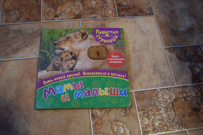 Из серии «Пушистые страницы» взяли на пробу книгу про мам и малышей. Первое разочарование-это брак на двух страницах. Ламинирование бракованное, в складочку получилось. Но возвращать, как пишет Лабиринт нужно всю посылку, да и за 250р. не стоит заморачиваться. Саше нравится трогать пушистые вставки. Мне не очень ещё понравилось, что на одной стороне мультяшные звери, на другой настоящие. Как по мне, лучше бы везде были одинаковые.