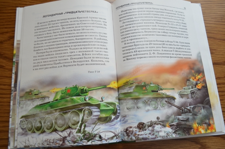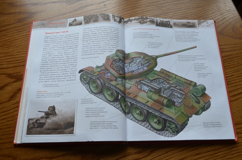 Любителям больших иллюстраций советую Большую книгу военной техники для мальчиков. На 1 танк - 1 разворот. Сын отметил разворот с дальностью танковых пушек.