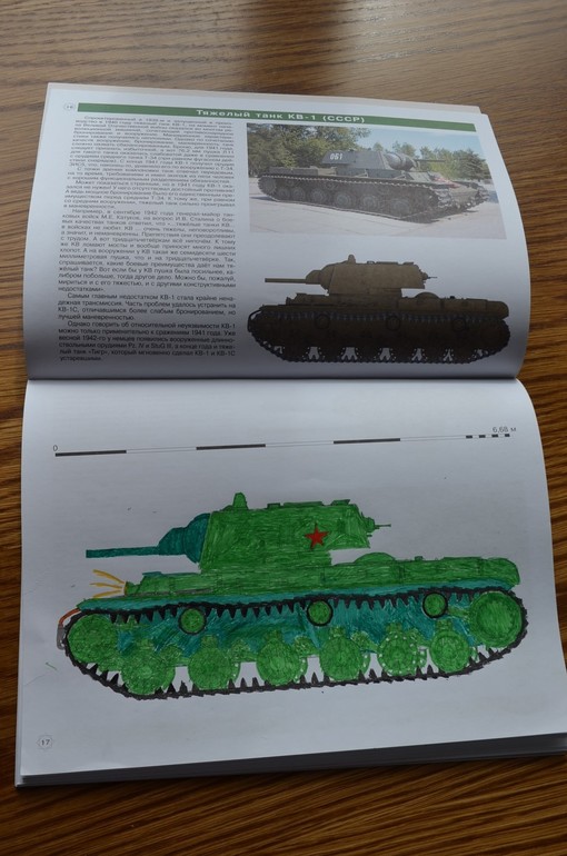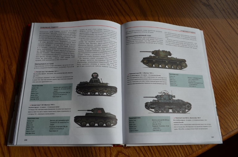 В книге Оружие Победы представлена вооружение и техника времен ВОВ в трех разделах сухопутные войска, крылья Победы и корабли Победы. Иллюстрирована книга прекрасными детальными рисунками и архивными фотографиями. Советую для тех кто интересуется всей военной техникой и историей ВОВ, а не только танками. Сын с сожалением отметил всего 10 разворотов с танками.