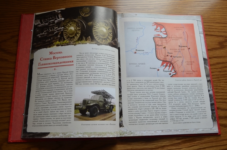 В книге Курская битва отражены этапы сражения на основе большого числа документальных материалов, военных и современных фотографий, сын отметил наличие карт и схем сражения. В книга нет технических характеристик, схем танков, больше фотографий, чем рисунков. Есть описание памятных мест.