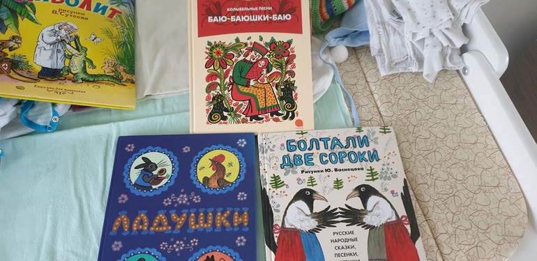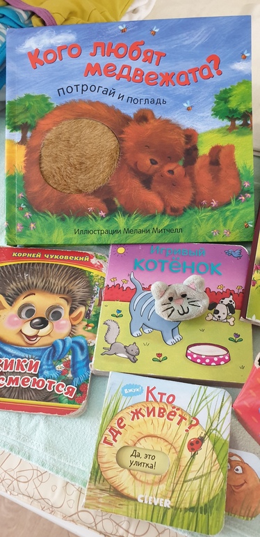 2. Это книжки с потешками народными, не знаю как назвать правильно. Ребенок их слушал когда я его кормила, или бодрствует до года точно, потом осталась сорока одна читали на ночь и утром, любит очень сороку и там есть ещё про собаку и пироги в печке.