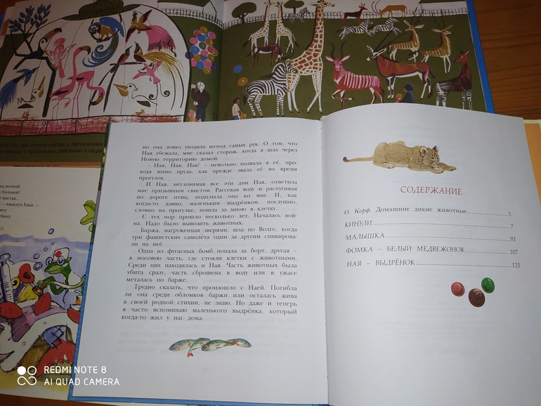 Еще читали рассказы Веры Чаплиной про животных из зоопарка. Немного в книге затрагивается тема войны. Про попадание бомбы в зоопарк. Есть смерти животных в книге. Умерла маленькая рысь, случайно сама задушилась шнуром. Мои спокойно все восприняли. Больше их волновало, почему мама бросила своих детенышей - львят.