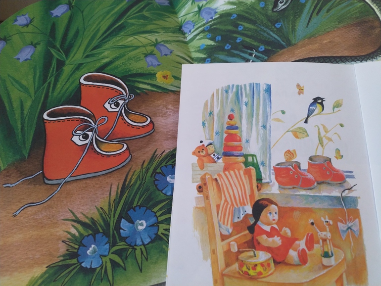 Полюбились книги про башмачки, после того как ей купили красивые сандали)) Но больше любима Про башмачки)