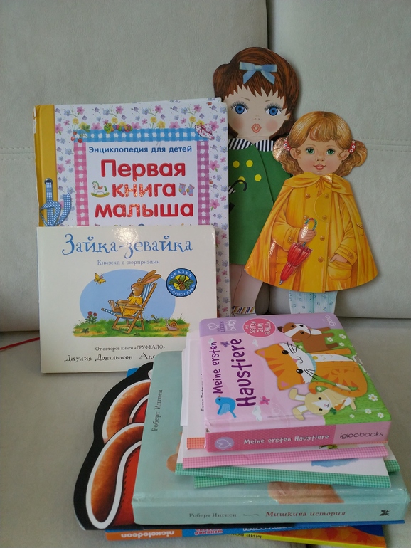 Листаем, называю ей предметы, накапливает пассивный словарный запас.