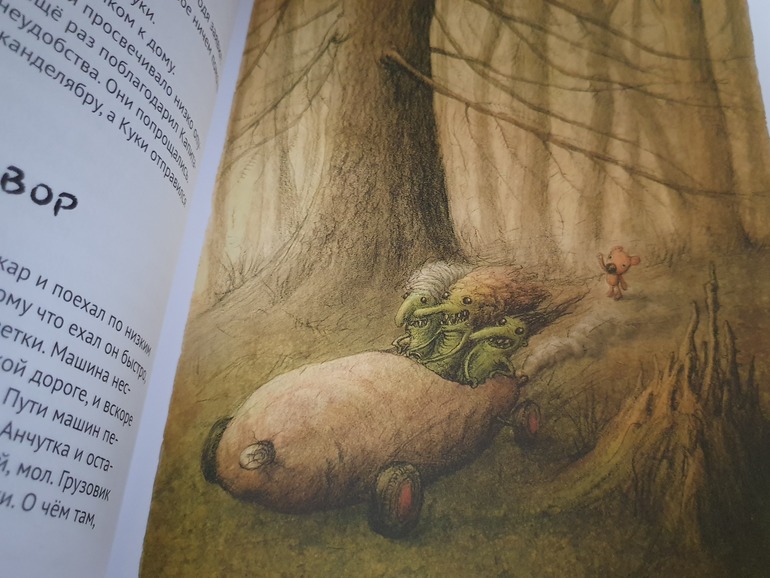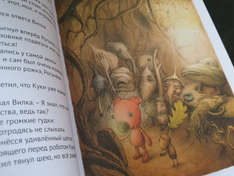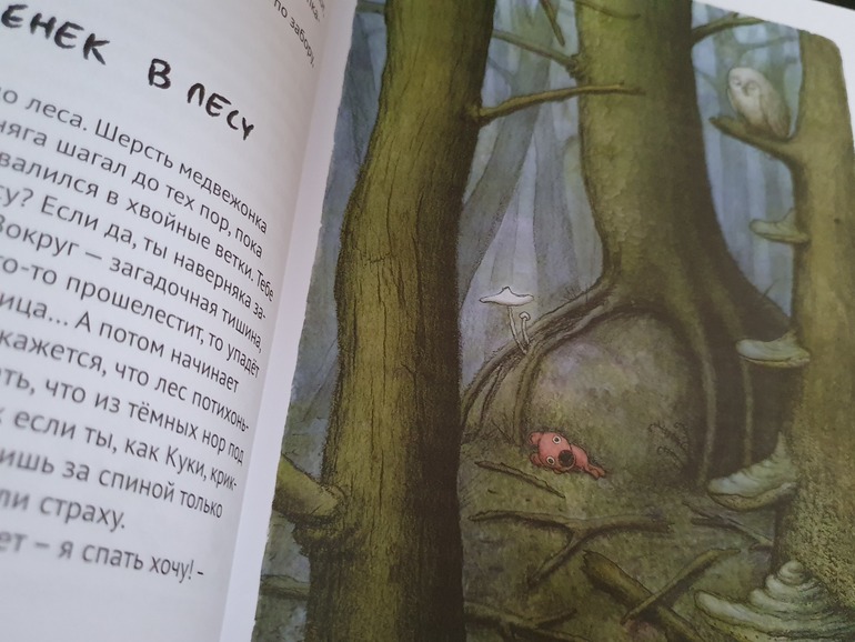 Мне не хватило в книге приключений в лесу. Как то они оборвались резко, каким-то обрубком повисли в сознание.А вот финал вообще разочаровал, прям какой-то неприятный осадок остался. История эта с бомжом...И самое главное (сейчас будут спойлеры) отсутствие долгожданного счастливого конца как такового. Мальчик так легко отказывается от вернувшейся своей любимой игрушки, отправляя её на очередное приключение как говориться. Да многие скажут, что тут очень тонкая философия, Куки нужен хранителю леса, капитану Херготу, что скорее всего медвежонок и сам станет новым хранителем леса, но впечатление осталось смазанное, обидно за Куки)). Даже сам мальчик предполагает, что скорее всего Куки отправят в помойку...