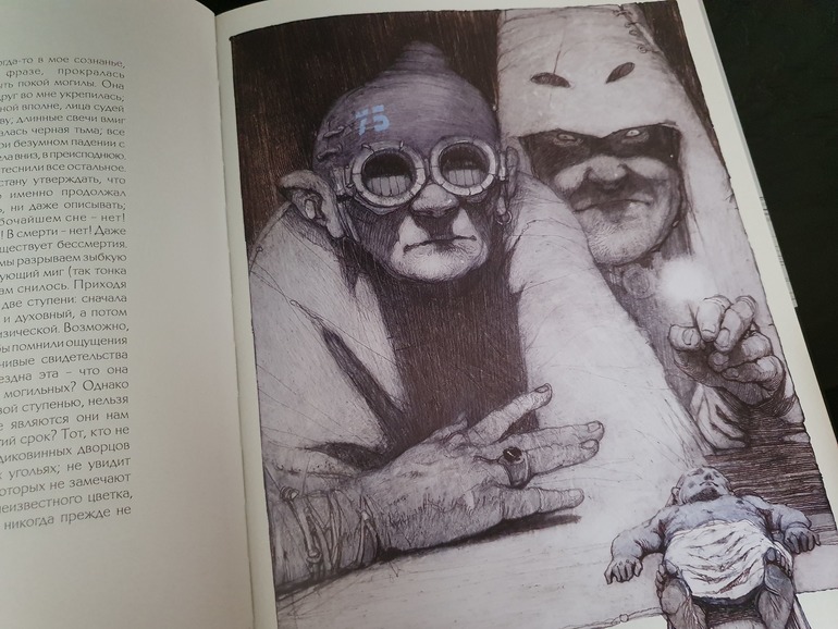 Иллюстрации Челушкина , на мой взгляд, прекрасно добавляют атмосферности рассказам Эдгара По. Они полны устрашающего сюрреализма и фантасмагории.