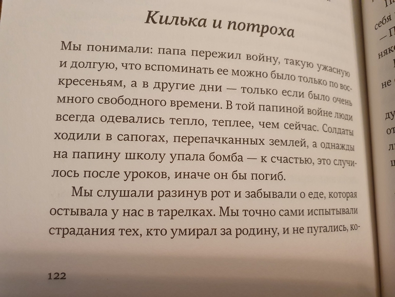 Понравилась единственная глава "Килька и потроха". Приложу фото текста этой главы. Извиняюсь за качество, только что сфотографировала на коленке))).