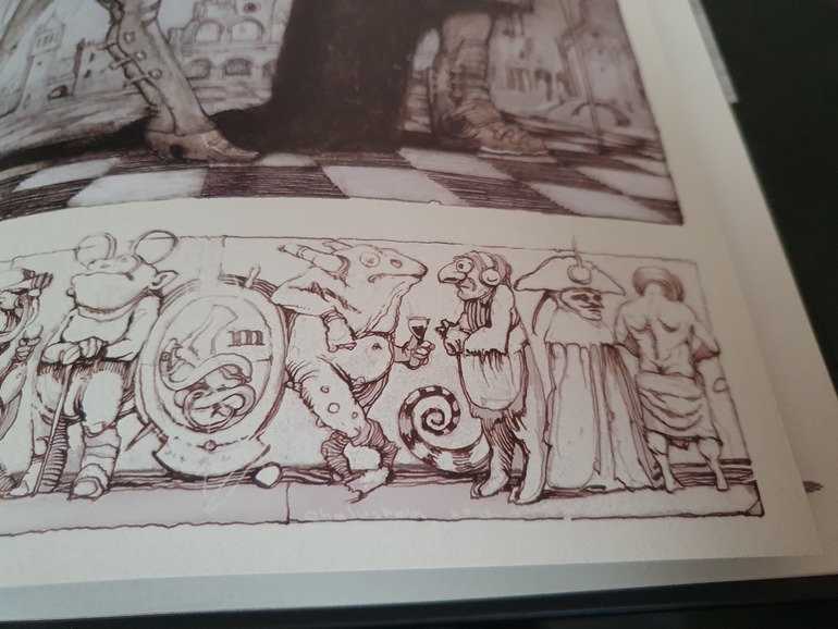 Иллюстрации Клима Ли мне не очень нравятся, а именно как он изображает людей, но не могу сказать, что они не подходят этой книги, соответствующую атмосферу текста они поддерживают.