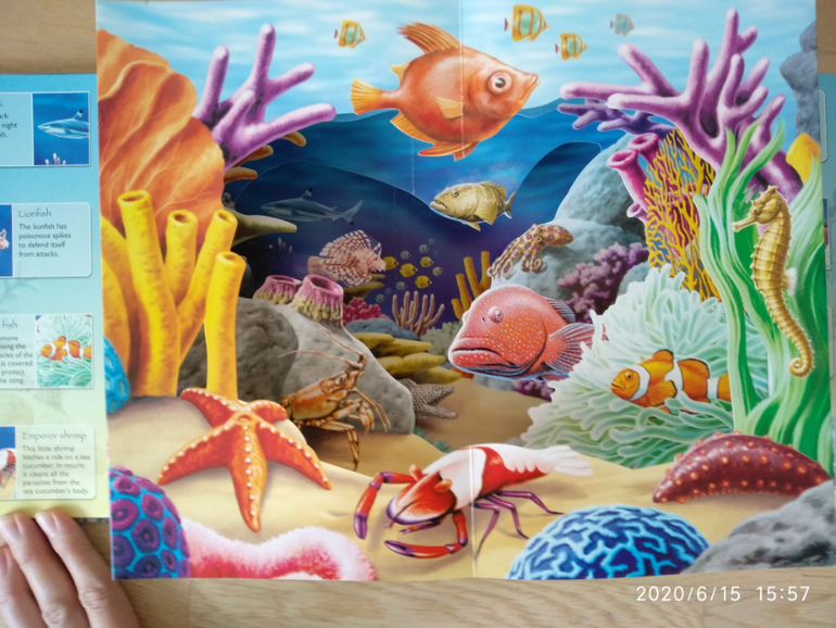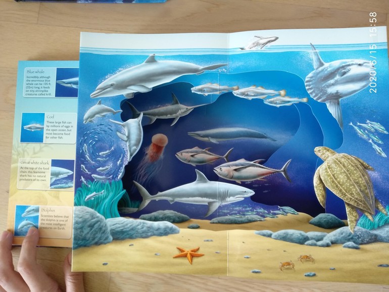Книги в живую очень красивые, не знаю видно на фото или нет, но та что про моря 3D, многослойные картинки, получается как живое изображение ближе/дальше, как то так...