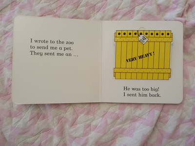 В этой книге читателю зоопарк высылает животных, и каждый раз оно не подходит=) Клапаны разнообразные. Книга была хитом и у старшей, и у младшей.