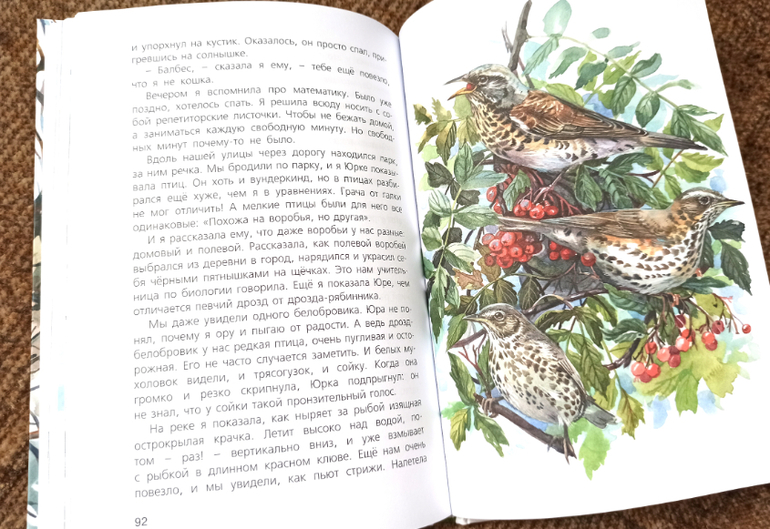 Вот что еще мне понравилось - комфортно читать книгу нашего привычного времени. Когда встал вопрос: что за птичка, как кормить - мои дети первым делом сказали, что надо посмотреть в интернете. Герои так и сделали, а еще стали обзванивать знакомых, искать все возможные источники информации. И читателю все понятно.