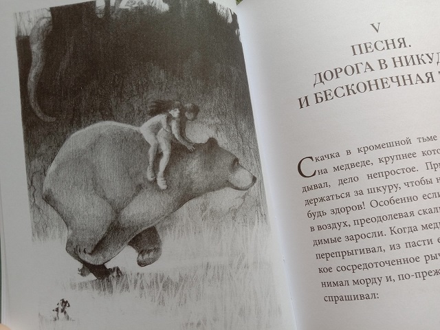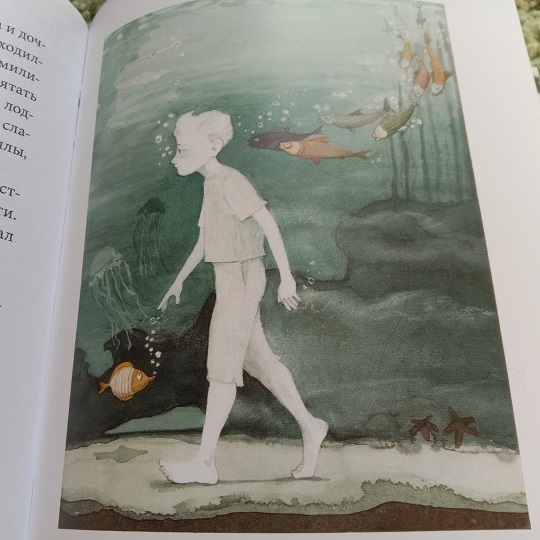 Путешествие это описано общими фразами. Но одна встреча - очень даже подробно. И благодаря этой встрече заканчивается история русалки. Та, с которой, на первый взгляд, ни к селу ни к городу началась книга. Эта закольцовка окончательно примирила меня с этой странной книгой. Окончательно - потому что примирение началось еще до этого, во второй половине, когда вдруг мельком упомянутые вначале детали стали выстреливать одна за другой: рука статуи среди хлама на дедушкином чердаке, коробка с лимонными косточками, которые собирали дети