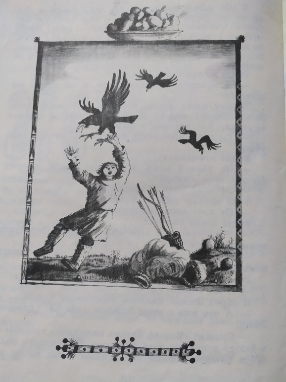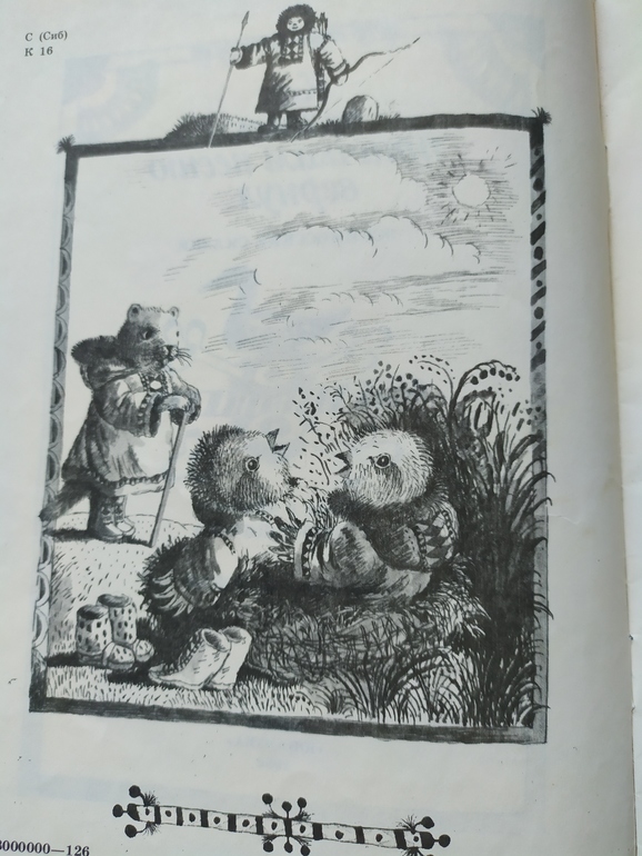 Давайте посмотрим. Первая - "Как человек птичкам песню вернул", эскимосские сказки, художник - И.Лобан.