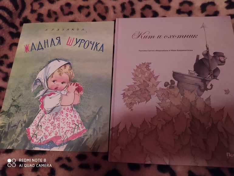 " Кит и охотник" - чудесная книга про доброту. Охотник так долго охотился за китом, что не стал его убивать) Иллюстрации необыкновенные.