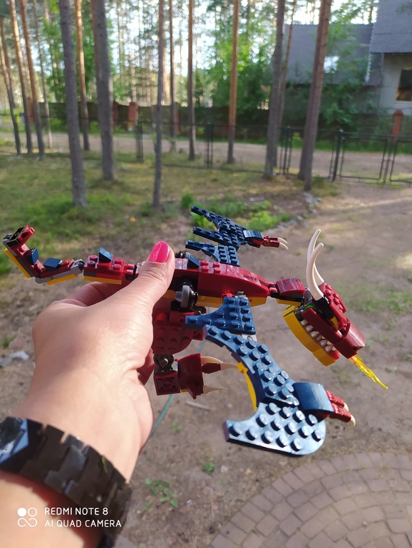 " Огненный дракон" понравился. У детей сейчас, как раз, опять возрос интерес к драконам и динозаврам. Варя собрала дракона Лего.