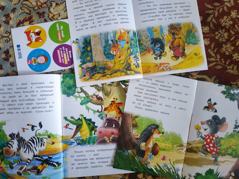 Заметила, что дочка стала сама брать почитать что-нибудь. Вот журнал с наклейками.