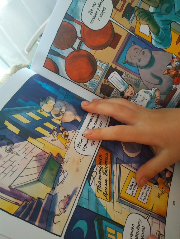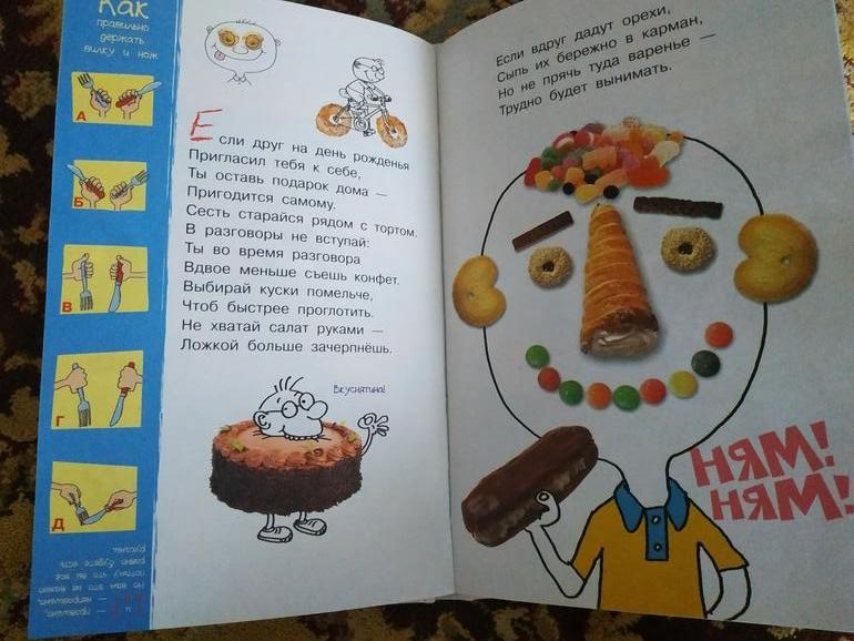 Дочка отказалась есть, пока не прочитает. Очень понравилась ей книжка. Перечитала два раза и смеялась.