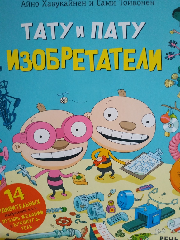 Тату и Пату изобретатели. Эту книгу долго я обходила стороной из-за иллюстраций. А зря! Замечательная книжка для фантазеров! Мою малоежку впечатлил всякобяко-определитель. Говорит, что ей нужен такой прибор, чтобы отлавливать лук в супе и пенку в каше.