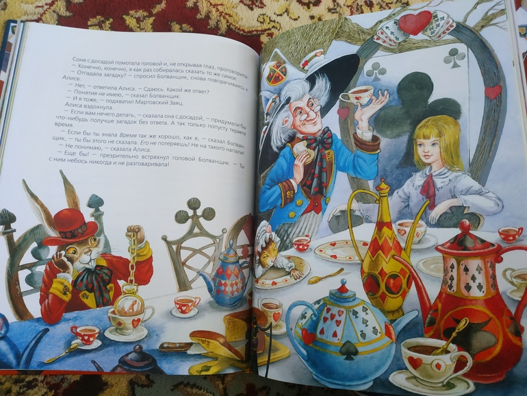 Алиса в стране чудес. ЧуднАя книжка. Я в детстве не читала. Дочке понравилось данное произведение. Хотя многое спрашивала в процессе чтения. Посмотрели мультфильм. Дочь перечислила все нестыковки с книгой. Рано мы конечно взялись за данное произведение. В школе перечитает сама.