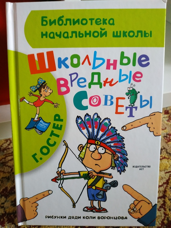 Школьные вредные советы. Посмеялись. Дочка пыталась некоторые советы сама читать. Перечитали пару раз. Думаю купить в домашнюю библиотеку подобную книгу, так как эту нам дали знакомые.