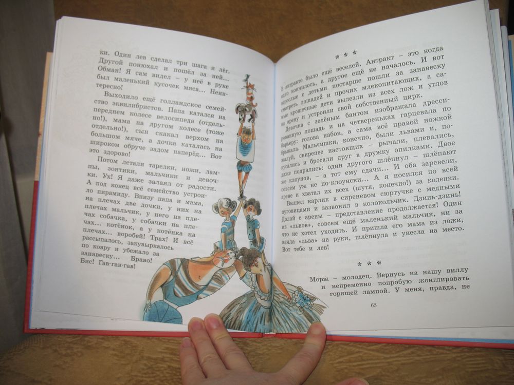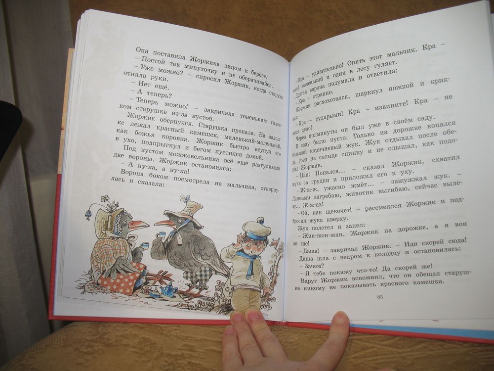 Сама книга очень понравилась. Крупный шрифт. Плотные страницы. Очень понравились иллюстрации художницы Двоскиной. Иллюстрации на каждом развороте. Много полностраничных иллюстраций.