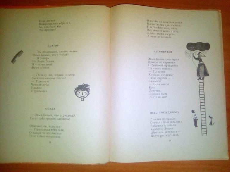 Стихи очень хорошие, некоторые озорные, с юмором. Но вот иллюстрации Е. Селивановой мне не нравятся. Точнее, сами иллюстрации нравятся, но не нравится, что на ее рисунках у всех людей (да и у животных) глаза куда-то закатываются, отчего выражение лиц какое-то неестественное получается. Мальчишкам эта книга тоже поравилась, даже, пожалуй, больше, чем Дриз.
