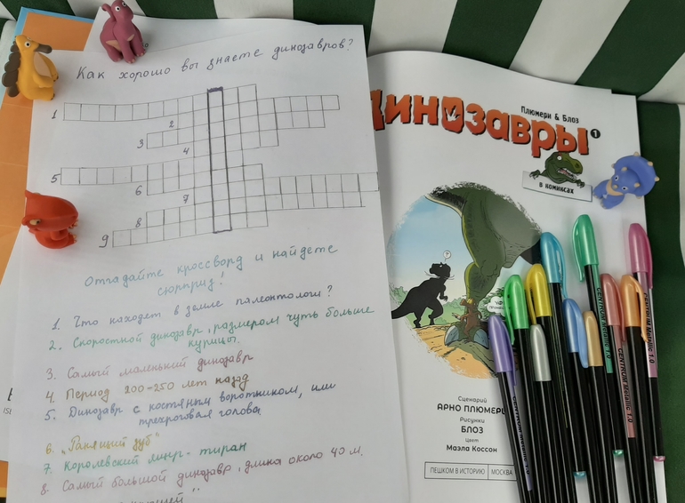 Динозавры в комиксах очень смешная, озорная и познавательная) с удовольствием почитали с ребенком, а потом я и квест по теме сделала, проходил со старшими сестрами)