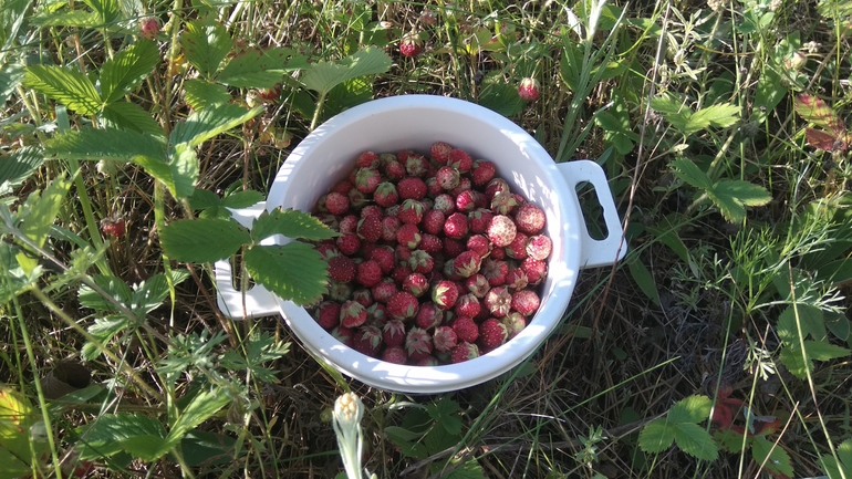Земляничная фея очень весело идёт в деревне, особенно глядя на ягоды. Собирали землянику в лесу и я вспомнила про земляничку. А Тёма кричит - Мама, надо искать чайник, это же ее домик.