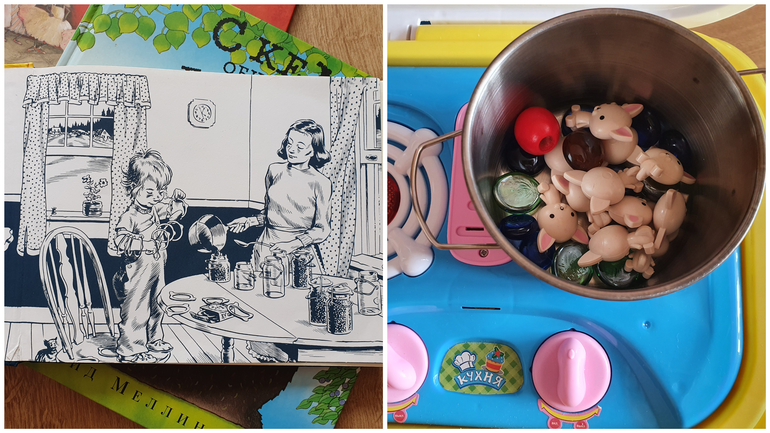 Потом читали "Чернику для Саши" Роберта Макклоски. Она удивительная, и иллюстрации, и текст. Одна из книг, которые мне хотелось бы сохранить для внуков 🙄