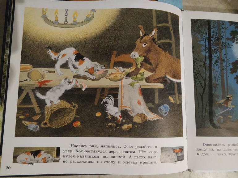 "Бременские музыканты" - тоже по-своему красивая, реалистичные животные, детальная прорисовка, по-моему, на возраст 2-3, а потом для не самого первого самостоятельного чтения.