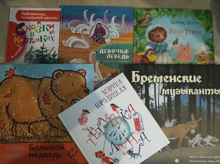 Прочитали сразу Большого медведя, 2 сказки Сутеева, Бременских музыкантов, Тётушку Луну и Ухти-тухти. Последняя впечатлила больше всего, дочка перед сном цитировала про фартук и носовые платочки 😂
