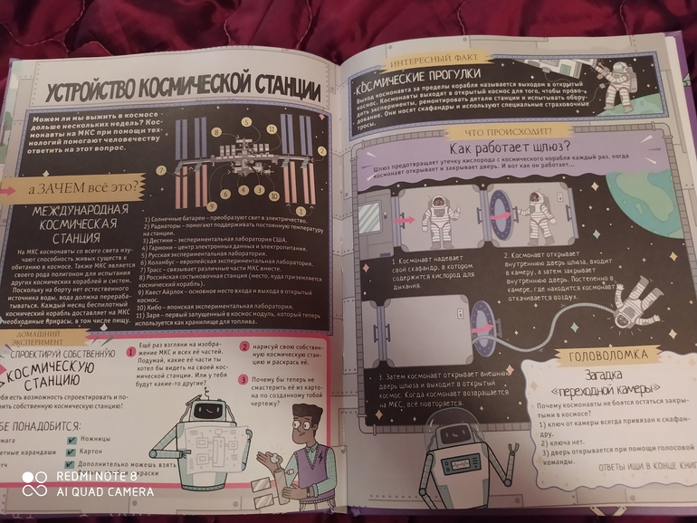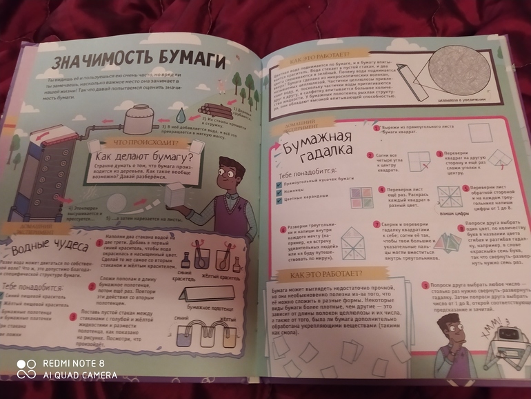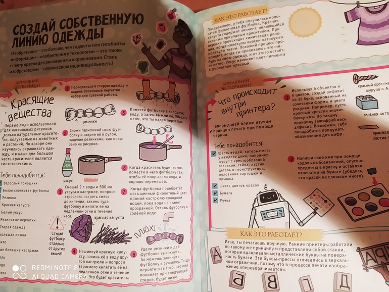 Варя моя сначала увидела и сказала - "Фу, это энциклопедия. Я не люблю энциклопедии". А потом разглядела, что это не просто энциклопедия, а различные опыты для детей. Глаза сразу загорелись. Опыты мы любим. По опытам у нас главный папа. Поэтому летний досуг с папой обеспечен)