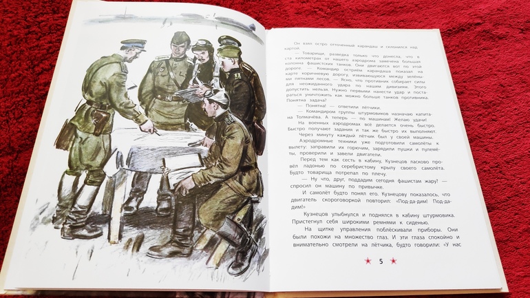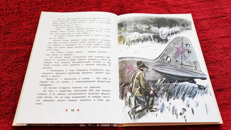 Это один из тех рассказов для детей, с которых можно начинать военное чтение. В нем есть боевой вылет, выполнение задания - штурмовики расстреливают танковую колонну врага. И счастливый курьезный случай - герой рассказа летчик-штурмовик Кузнецов на подбитой машине приземлился на лесную поляну, оказавшуюся замаскированным фашистским аэродромом и умудрился улететь на вражеском самолете. "Махнул не глядя" - помните, как в фильме?