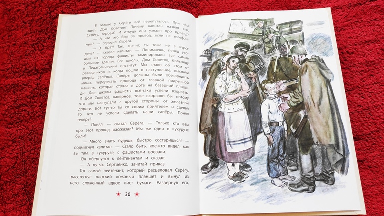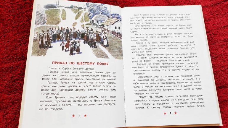 В книге "Приказ по шестому полку" - один рассказ о друзьях-мальчишках, сумевших при отступлении гитлеровцев из оккупированного города предотвратить взрывы главных его зданий. Мальчишки обнаружили и перебили провод, который фашисты проложили к заминированным зданиям. За что были награждены.
