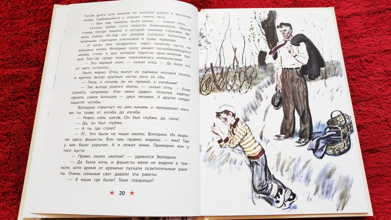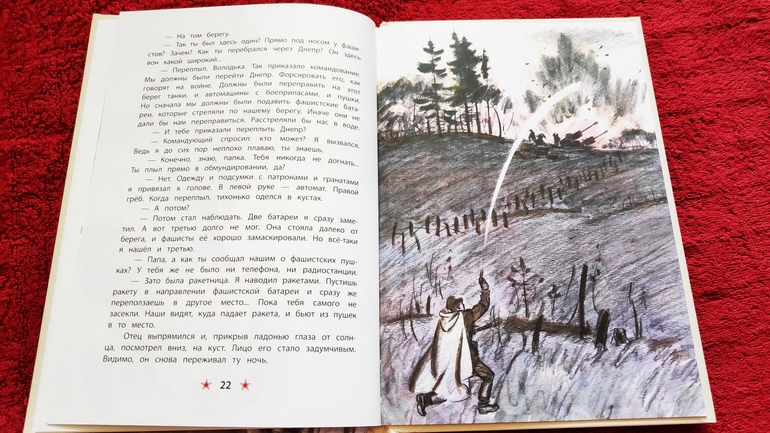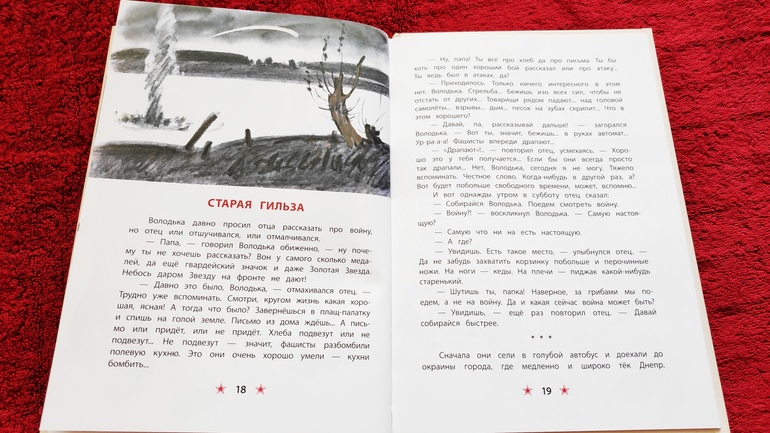 Второй рассказ "Старая гильза", в котором, отец-фронтовик уже после войны вместе с сыном собирают грибы в местах бывших боев на берегу Днепра. И отец рассказывает мальчику эпизод из своей фронтовой жизни, который произошел именно здесь, в этих местах.
