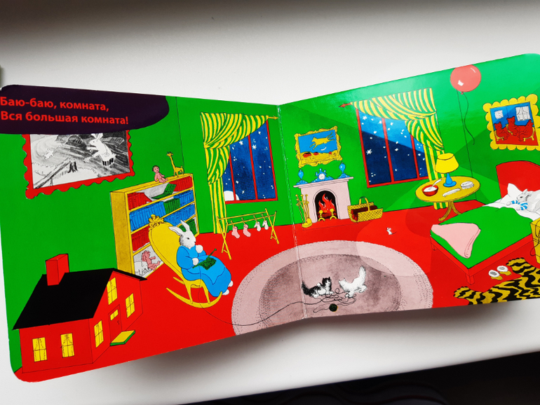 Чего только не придумывают мамы, чтобы уложить ребёнка спать, и на что только не идут дети, чтобы не заснуть. Уже много-много лет (больше сорока!) миллионы американских детей засыпают вместе с зайчонком, героем книги Маргарет Уайз Браун и Клемента Хёрда «Баю-баюшки, луна». Он, так же, как и наши малыши, никогда не согласится с тем, что пришло время спать. Тем более, что вокруг столько интересного. И воздушный шарик, и летающая корова, и три медведя, и котята, и рукавички, и кукольный дом, и мышка, и миска с молочной кашей. Но все выше поднимается луна, в комнате гаснет свет, и глаза сами собой начинают закрываться - неугомонный зайчонок засыпает. В этой книжке есть то, что так необходимо всем детям - уютный мир, чувство защищенности и уверенность в том, что наутро он проснется в своей комнате, среди любимых игрушек и мама, конечно, тоже будет рядом. Отдельное удовольствие - рассматривать иллюстрации Клемента Хёрда. Как и в книжке «Как зайчонок убегал», они кажутся незамысловатыми - простые линии, наивные цвета (красный и зеленый - казалось бы, странный выбор для «книжки на ночь»). Но, рассматривая мелкие детали, которые изменяются от разворота к развороту, наблюдая, как изменяется, затихает стабильный мир детской, мы буквально ощущаем движение времени. Стихи Маргарет Уайз Браун перевела замечательный поэт Марина Бородицкая - она как будто заново изобрела текст этой классической книжки, наполнив его теми интонациями, которые знакомы и близки русскоязычным читателям. «Баю-баюшки, луна» - это идеальная колыбельная! Ритмичность и с каждой страницей гаснущие иллюстрации усыпляют даже взрослых.