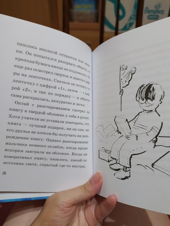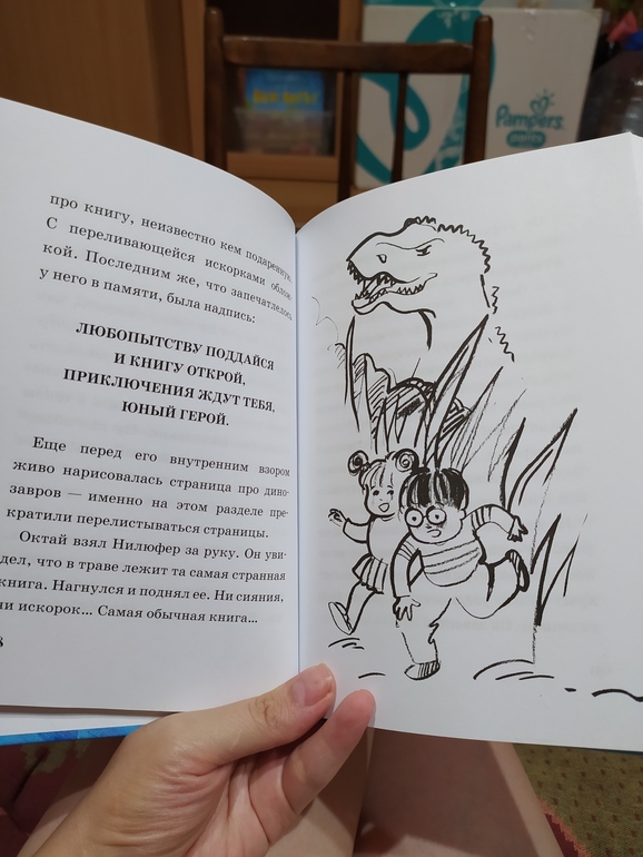 Детей 6+ у меня нет. Пробовали читать с дочкой 5,5. Она сразу книгу забраковала. Поэтому читала я сама и впечатления с моей взрослой колокольни. А они не самые радужные. Меня книга не впечатлила вообще. Более того пришлось таки прилагать усилия, чтоб прочитать полностью. О чем книга? Жили-были турецкий мальчик Октай и его подруга Нилюфер. Возраст их толи я не поняла, толи пропустила. Но школьники. И объявляют им на понедельник экзамен по истории, очень сложный. А у Октая в субботу день рождения. И вот перед днём рождения, который под угрозой срыва, т.к. все будут готовиться к экзамену, мальчик в процессе зубрежки исторических дат и событий, вдруг загадывать: а что если бы вся история была в одной интересной книге. И что бы вы думали? Книга оказывается в числе подарков на день рождения. Книга оказалась не простой, а волшебной. Она могла переносить детей в разные эпохи и времена. И дальше собственно идут путешествия: к динозаврам, в будущее, в 1972 год и на неделю раньше. Собственно логики в выборе именно этого времени нет никакой. Логично было было, если бы Октай не мог выучить тему про "русско-турецкие" войны и они вот оказались в гуще событий. Но динозавры... Это какое-то уже клише: если в прошлое, так к динозаврам. То же самое и с будущим. Зачем они там вообще оказались? Как-то между делом мелькает тема экологии, но опять же настолько мелькает, что даже самый трепетный читатель не факт, что ухватит эту мысль. Дальше 1972. Октай и Нилюфер оказываются у дома бабушки девочки и Ви д ят её папу 9-летним мальчишкой. Вот зачем это? Никаких семейных проблем в настоящем не было, чтобы искать на них ответы в прошлом. Пролетев на неделю раньше настоящего времени, они обнаружили, что из учительница оказывается забыла экзаменационные листы в туалете. Хотя обвиняла учеников в краже. И представьте, вернувшись в настоящее, они нашли эти листы на слишком банке (вот так хорошо прибирают в туалетах в Турции)))). И что в итоге? Да ничего. Полюбил Октай историю? Понял для чего её знать? Нет. Вот такой сумбур. Может, конечно, читатель 6+ и оценит, но я своей, наверное, давать читать не буду.