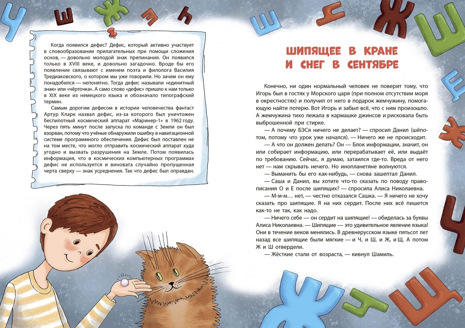 Данил вместе с новыми друзьями Игорем и Сашкой обязательно это выяснит, а ещё найдёт Блок Экспериментальных Сведений, сбежавший от инопланетян. И, конечно, легко и быстро выучит правила и узнает много нового из истории правописания.