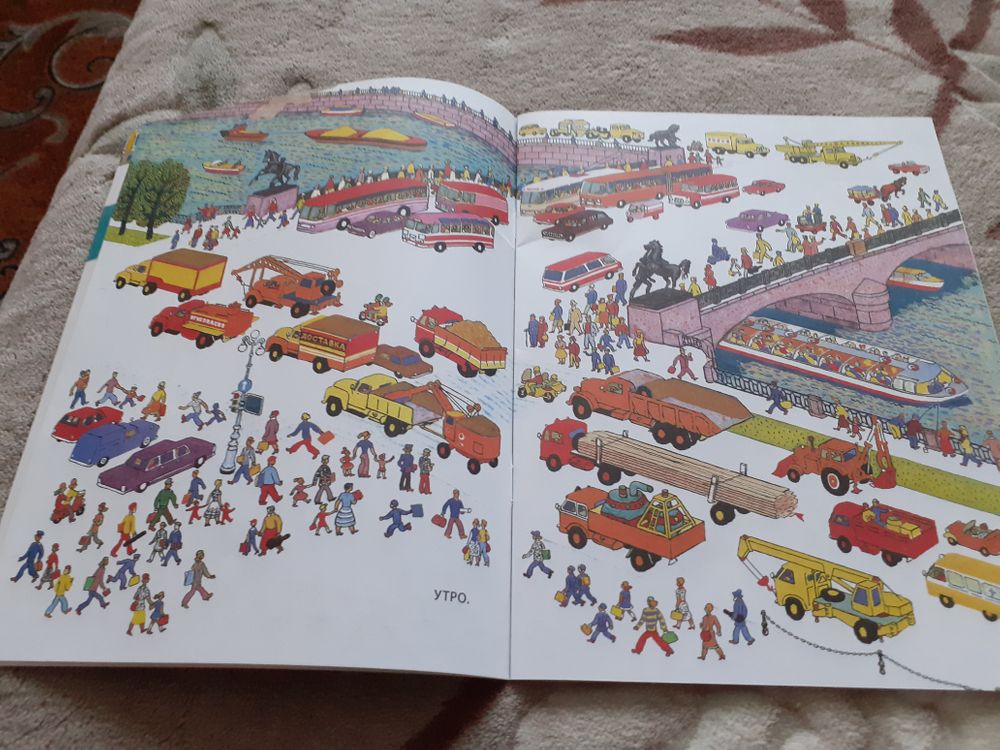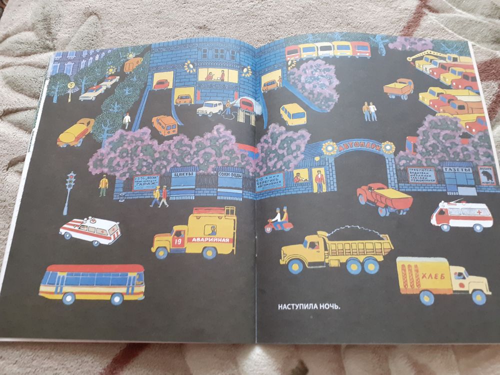 Эта книга , в которой почти нет текста, книга для разглядывания. Была издана впервые еще в 1963 году, в 1981 году были внесены некоторые изменения. В ней можно увидеть советский город Ленинград. И конечно различный транспорт! Для любителей машинок очень даже! Мой сынок когда то сходил с ума по машинкам, если бы книга попала к нам в руки тогда...