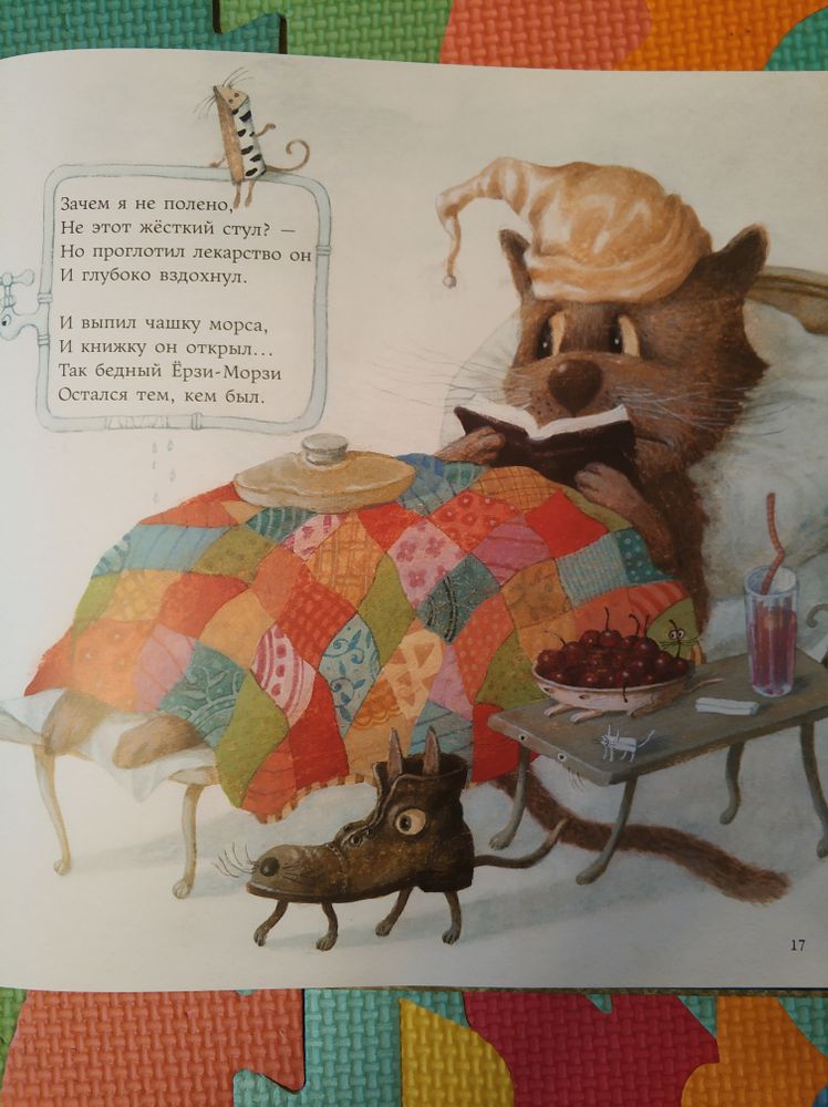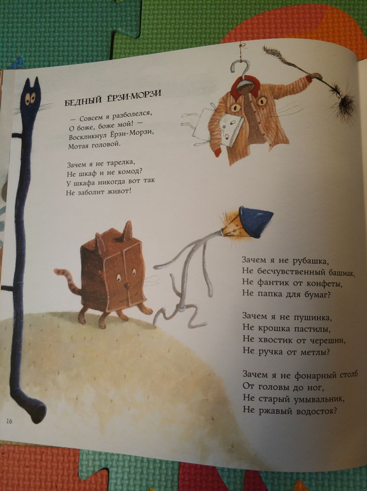 Недавно наблюдали, как вода с крыши льется через ржавый водосток, вспомнили стих про Ерзи-Морзи и... пришлось купить книгу) Смешные и необычные стихи, под стать им и иллюстрации Антоненкова (у нас его Репка ещё есть).