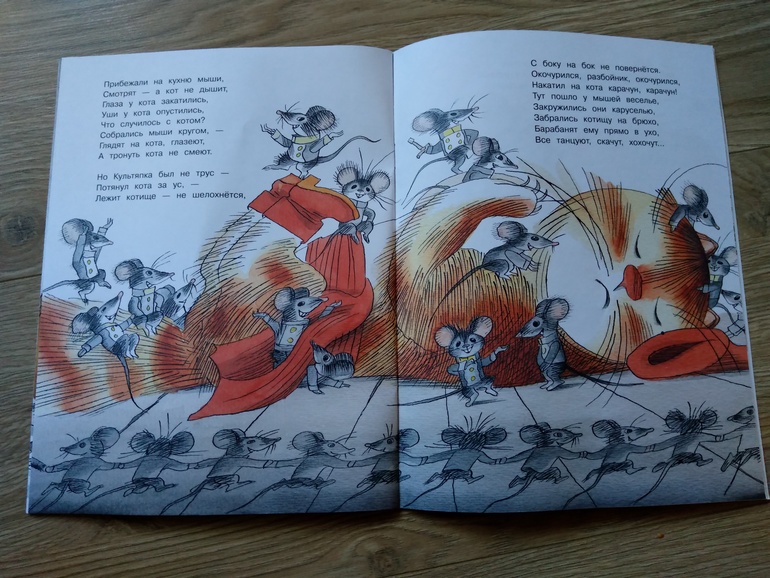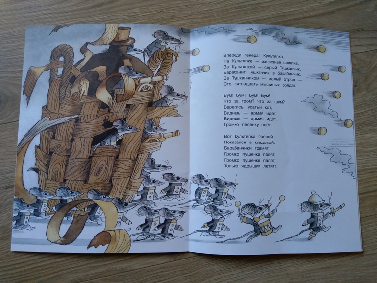 . Любимая мамина книжка - это знак качества. Книга замечательная! История в стихах о том, как глупые мыши кота победить вздумали. С 2.5 до 5 лет книга малышами будет читаться до дыр. Мой почти шестилетний человек послушал с удовольствием, испытал восторг от мышиный пальбы из пушек