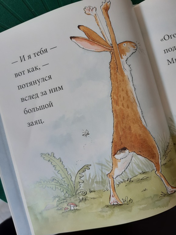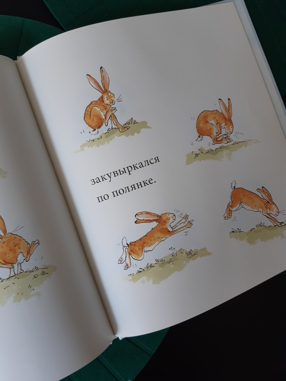 Каждый раз, когда читаем с сыном эту книгу, мы обязательно повторяем все движения за зайцами и получается очень весело и задорно